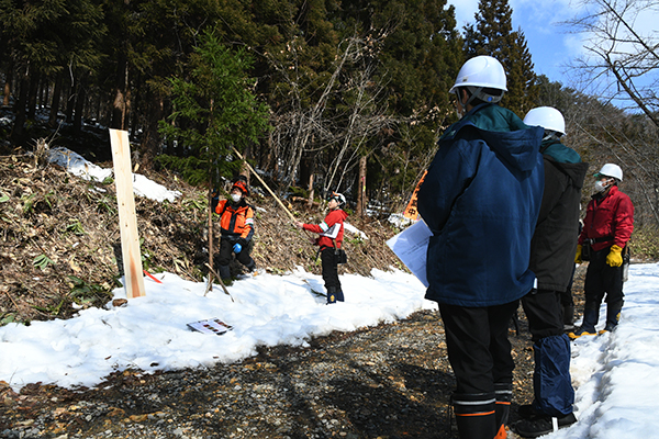 3月24日(木)、盛岡セイコー工業株式会社の社員6人が杉の枝打ち作業を体験しました。
