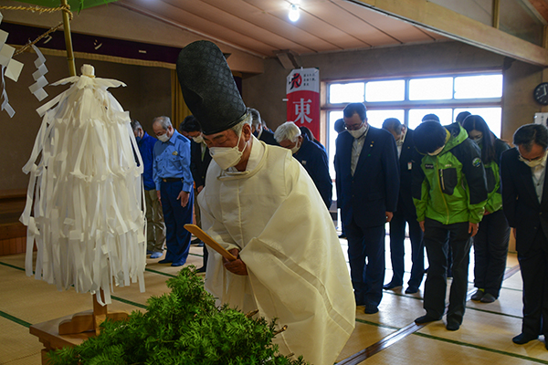 当日は猿子町長ら関係者40人が参列し、今年一年の山の安全を祈願しました。猿子町長は「高山植物の宝庫でもある駒ケ岳は、多くの登山者で賑わうことが予想されます。関係各所の皆さまには、登山者の安全のためにお力添えいただきたいと思います」とあいさつしました。また、しずくいし観光協会の松原久美会長は「アウトドア需要の高まりで登山人口も増えています。町の山を訪れる人たちには、事故なく安全に楽しんで欲しいです」と呼び掛けました。