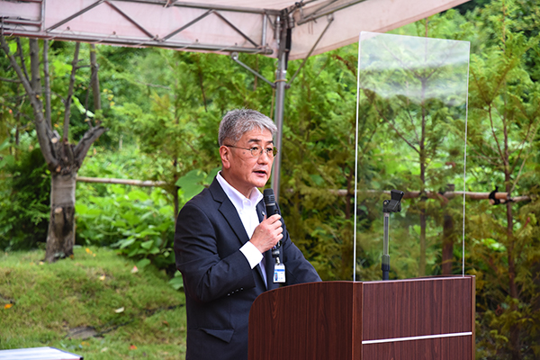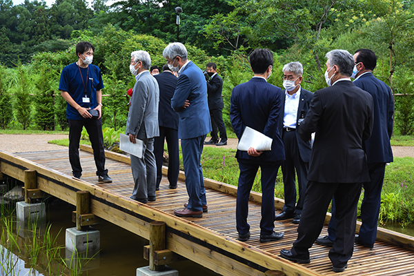 このビオトープは、生物多様性保全活動の一環として創設されたもので、植物や土壌の浄化作用を活用した水資源の循環にも挑戦するとのこと。林義明代表取締役社長は「環境学習にも活用してもらい、地域の憩いの場として一般開放も検討している。子どもたちの未来のためにこのビオトープをより大きく成長させていきたい」と今後の意気込みを語りました。