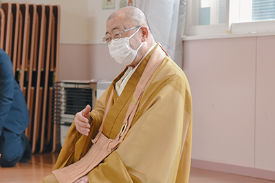 座禅を教えるのは町社会福祉協議会会長で、臨済寺の住職でもある目時大堂さん。目時さんは「座禅は、姿勢を正し呼吸を整えることで、心の安心が得られるものだよ」と園児らに説明し、座禅会が始まりました。