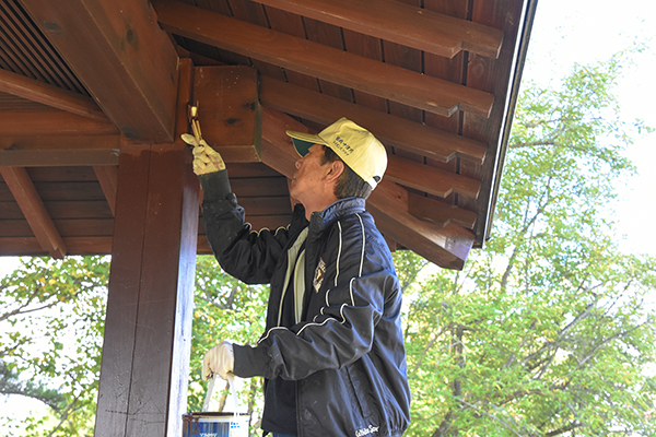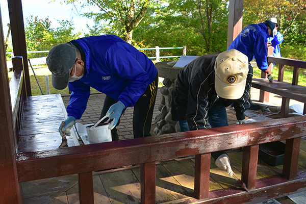集まった会員の皆さんは終始和気藹々とした雰囲気で、約1時間ほどをかけて東屋のペンキ塗りを行っていました。