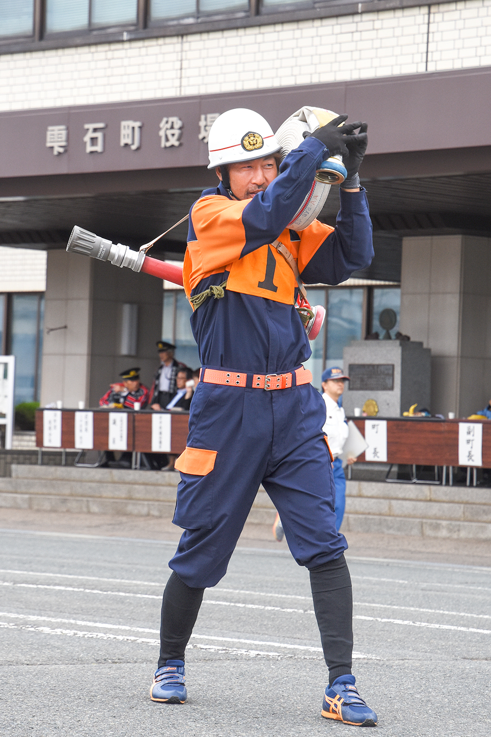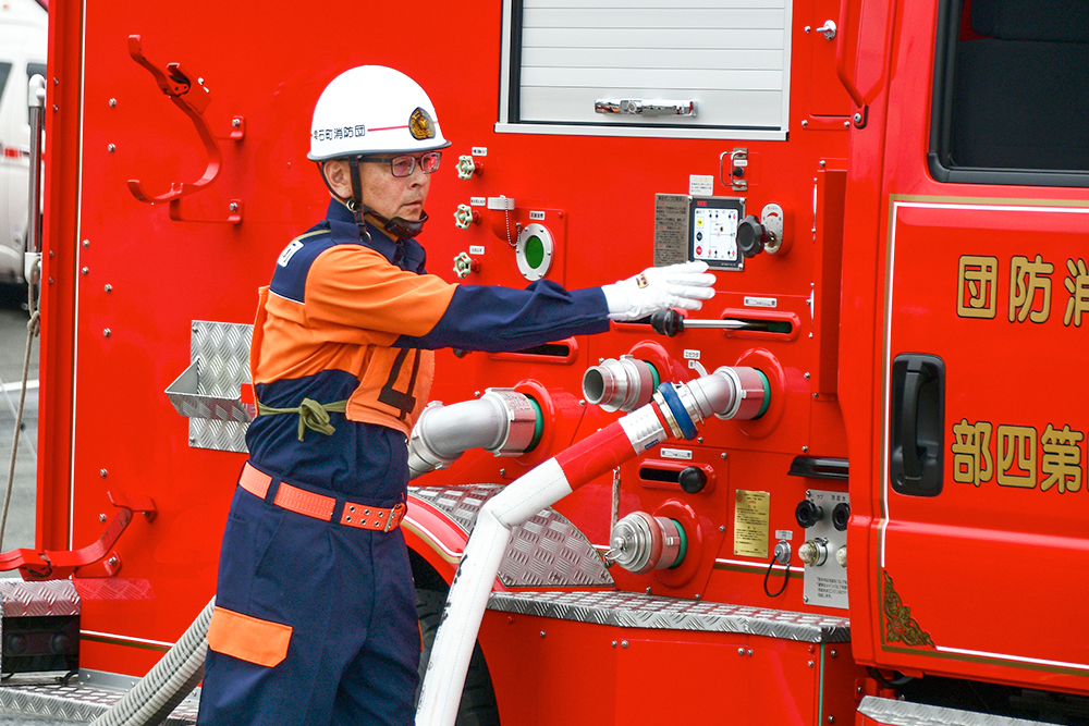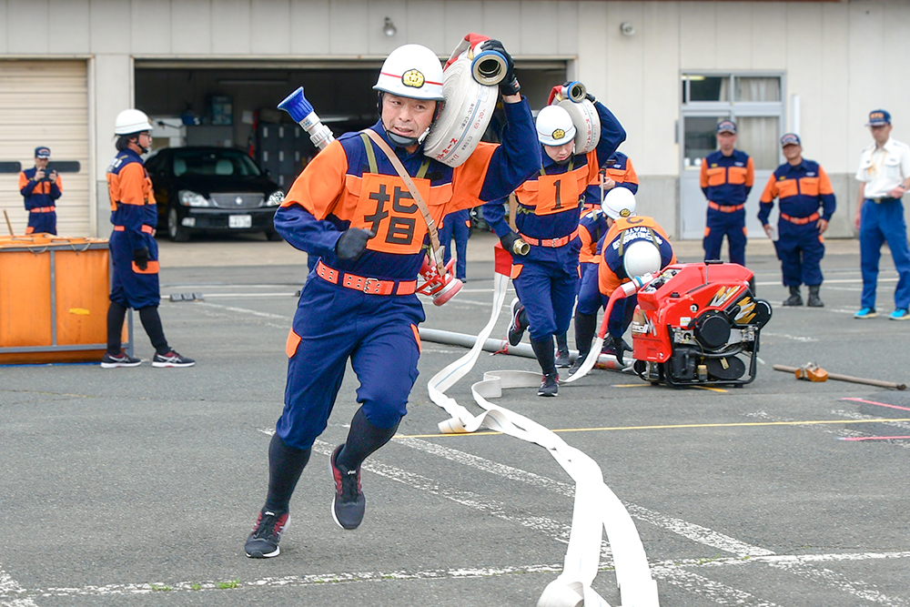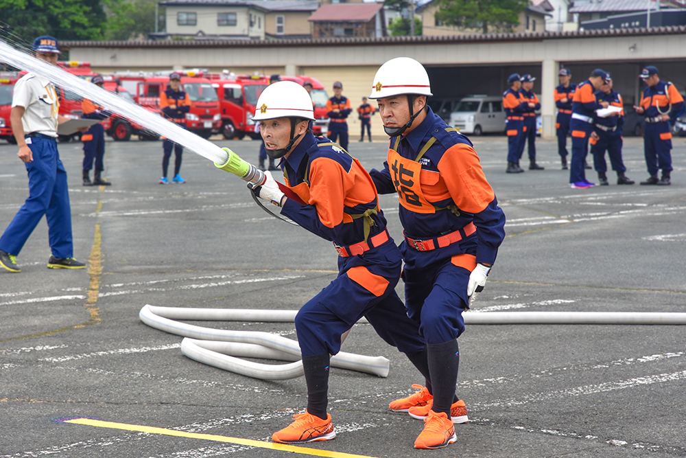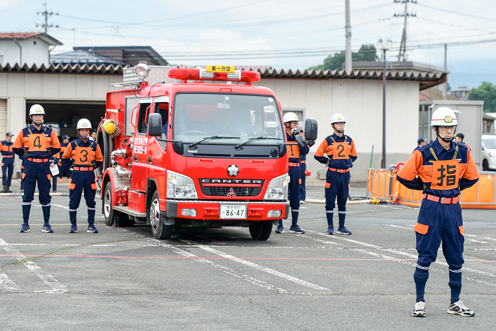 開催に当たり、猿子町長は「昨年度は、ポンプ車の部で県2位の成果上げるなど、本町の消防団のレベルが相当向上しています。練習の成果を遺憾なく発揮し、全国大会出場を目指し頑張ってください」と団員らを激励しました。