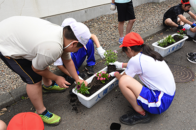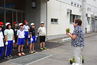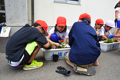 この運動は、子どもたちに草花の世話を通じて、命の大切さや相手を思いやる気持ちを養ってもらうことを目的に、町の人権擁護委員さんの人権啓発活動として毎年各小学校で行われているものです。