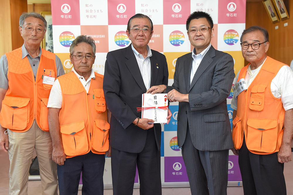 8月10日(木)、株式会社中村建設(中村和芳代表取締役)より、町の有害鳥獣被害対策に対しご寄付をいただきました。