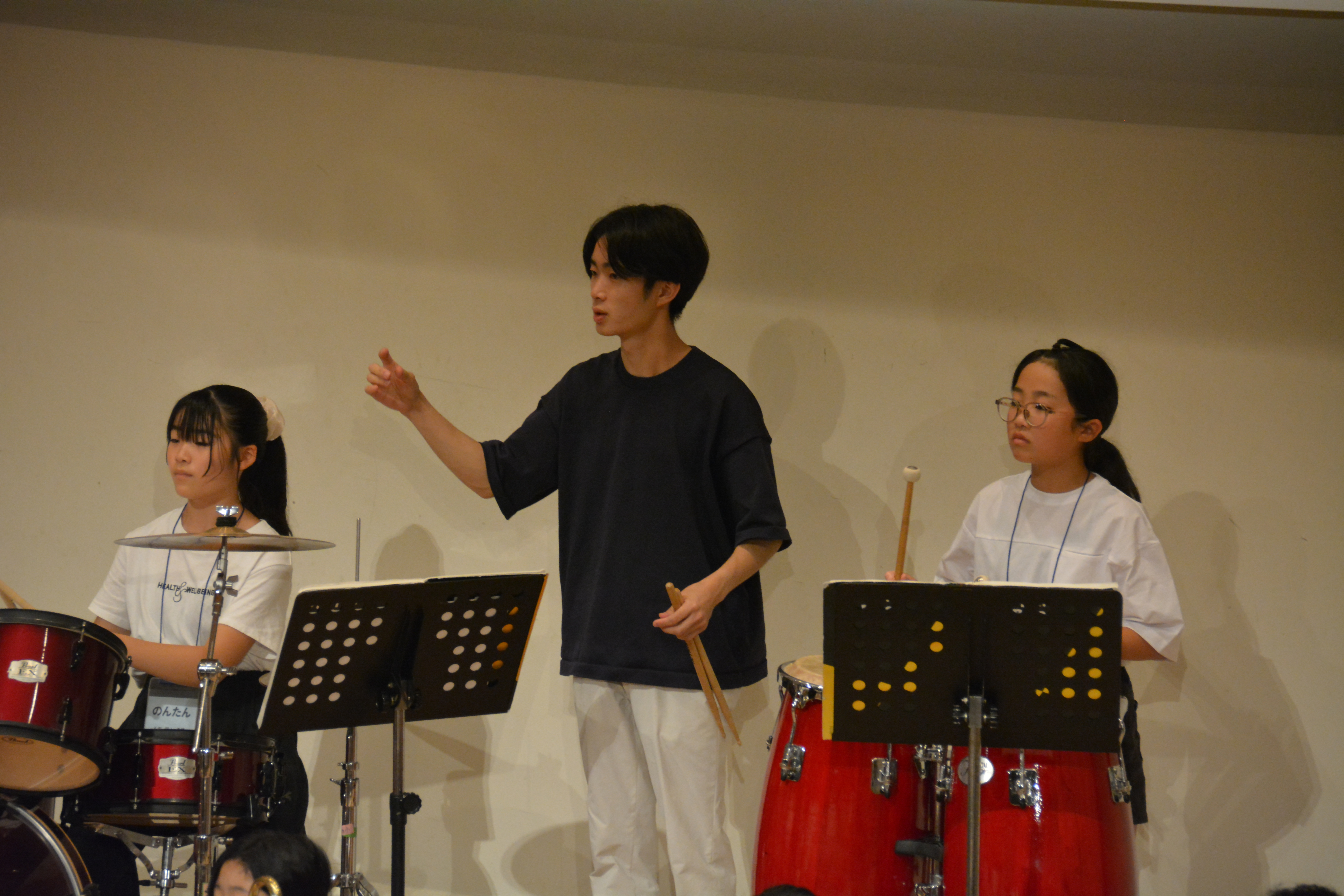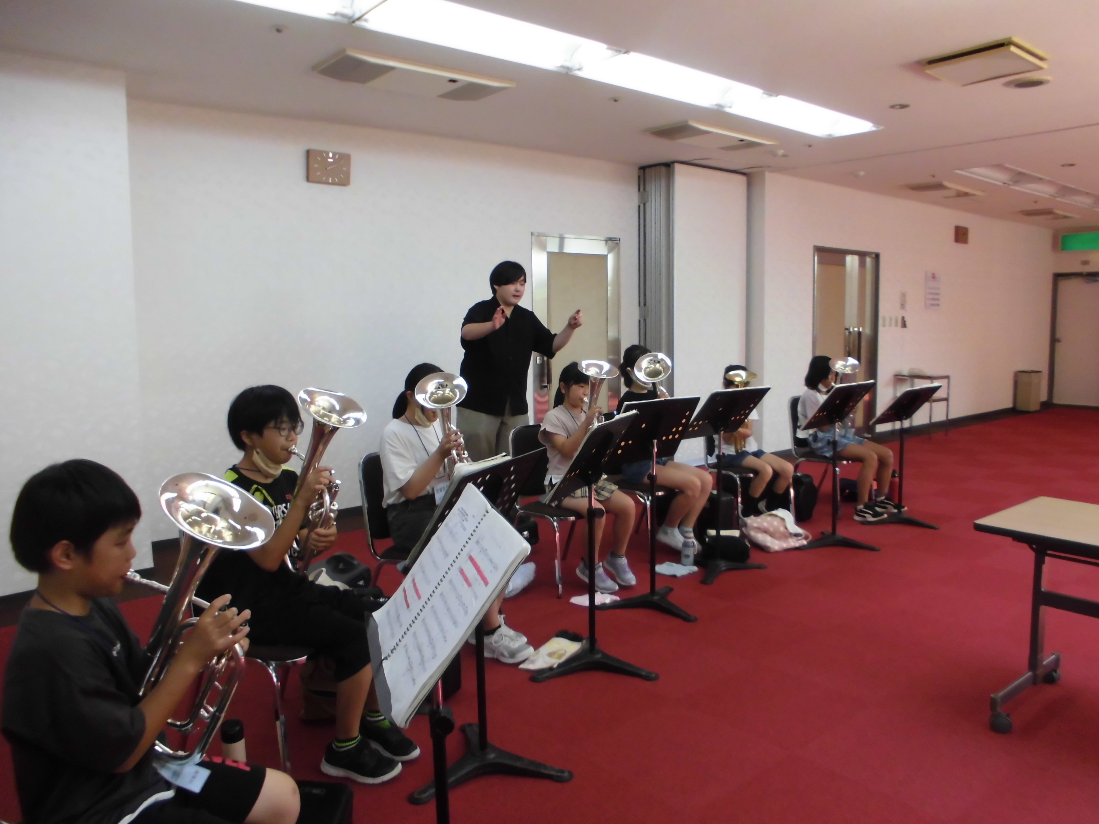1.合宿中に行われた七ツ森小学校金管バンドへのワークショップ