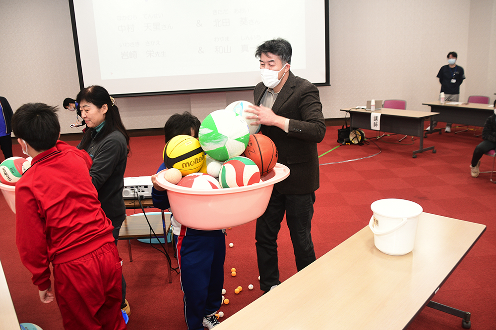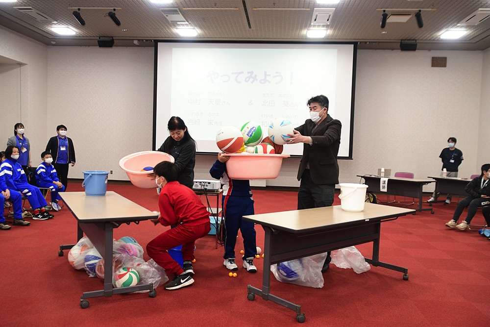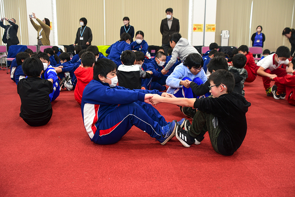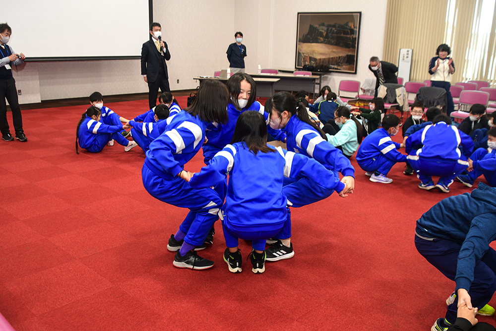 児童らは、この日初めて話す他校の児童と共に意思疎通を図るゲームにチャレンジしたり、ストレスを抱えすぎるとどうなるかをボールとたらいを使って体験。悩んだりひとりぼっちのときは、安心して話ができる人が大切な存在になり、また、話を聴き人の気持ちを分かろうとすることの大切さを学んでいました。