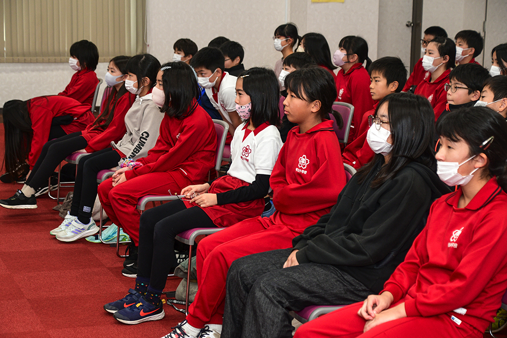 - 真剣に話に耳を傾ける児童