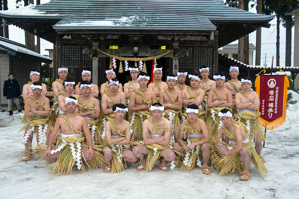 44回目となる今回の裸参りには、祈願者23人が参加し、古式にのっとった装束「腰みの」「お守り」「横綱」に身を包んだ若者が雫石町上町の三社座神社から下町の永昌寺まで約1.2キロメートルの道のりを約2時間かけてゆっくりと祈願をしながら歩きました。