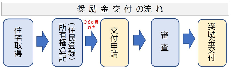 - 奨励金の交付申請の日までに町内において住宅取得を行い、当該住宅に居住していること。(当該住宅の住所への住民登録必須)