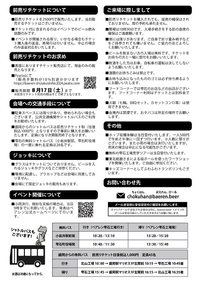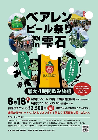 ◎ 詳細はこちら(チラシ)⇒ベアレンビール祭り2024in雫石[PDF:2.87MB]