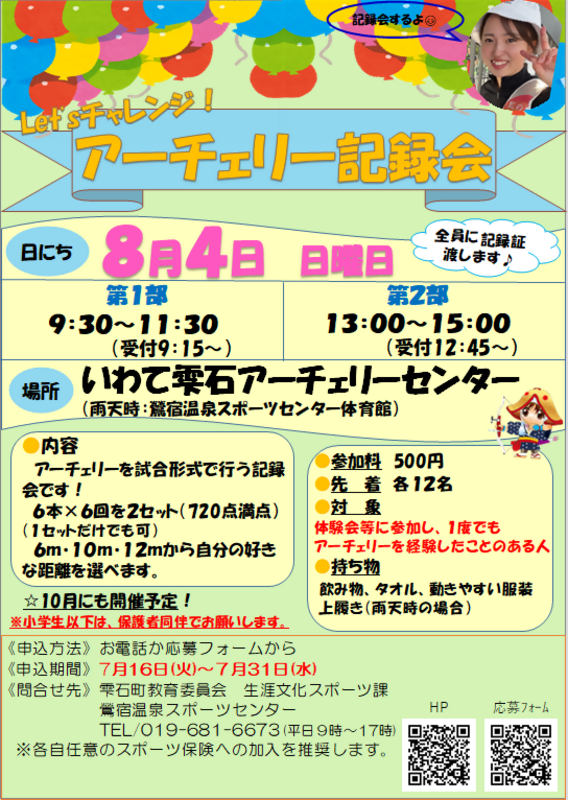 町民へのアーチェリーの普及及び競技人口の拡大を図るため、アーチェリー記録会を開催します!