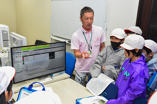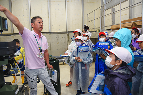 御明神小学校児童らの見学の様子