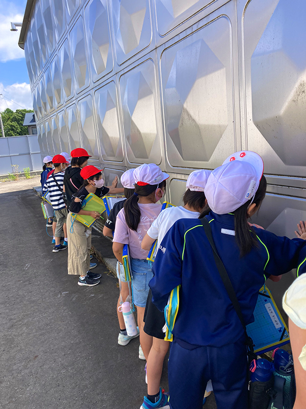 見学後には、「1日にどのくらいの水を綺麗にしているの?」、「元々の水はどのくらいの汚さなの?」、「塩素を使って消毒していたけど体に害はないの?」など積極的な質問があり、水道水への関心を高めるとともに、水の大切さを知る機会となりました。