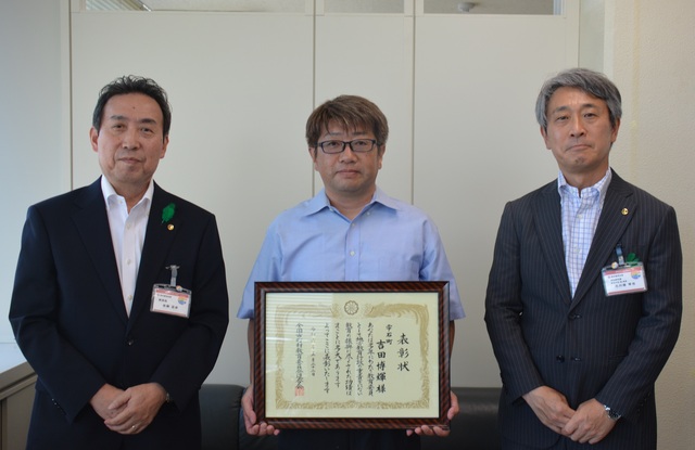 表彰状は、9月4日に佐藤 嘉彦教育長から吉田さんへ伝達されました。