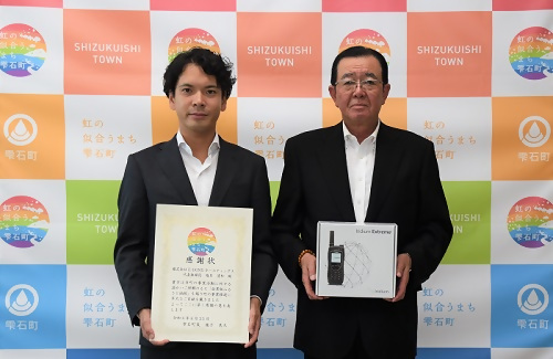株式会社E-BONDホールディングス(塩月清和代表取締役、本社埼玉県)より、本町の地方創生の取り組みに関する企業版ふるさと納税として、衛星携帯電話端末とプリペイドカード(数量各3、物品相当額5,052,000円)を物納としてご寄付いただきました。