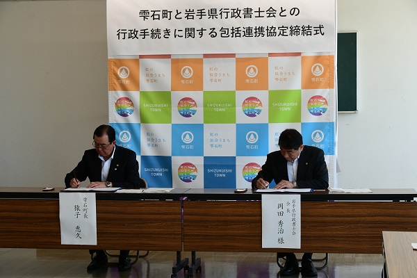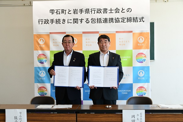 8月20日(火)雫石町役場で、岩手県行政書士会(岡田秀治会長)との行政手続きに関する包括連携協定締結式が行われました。