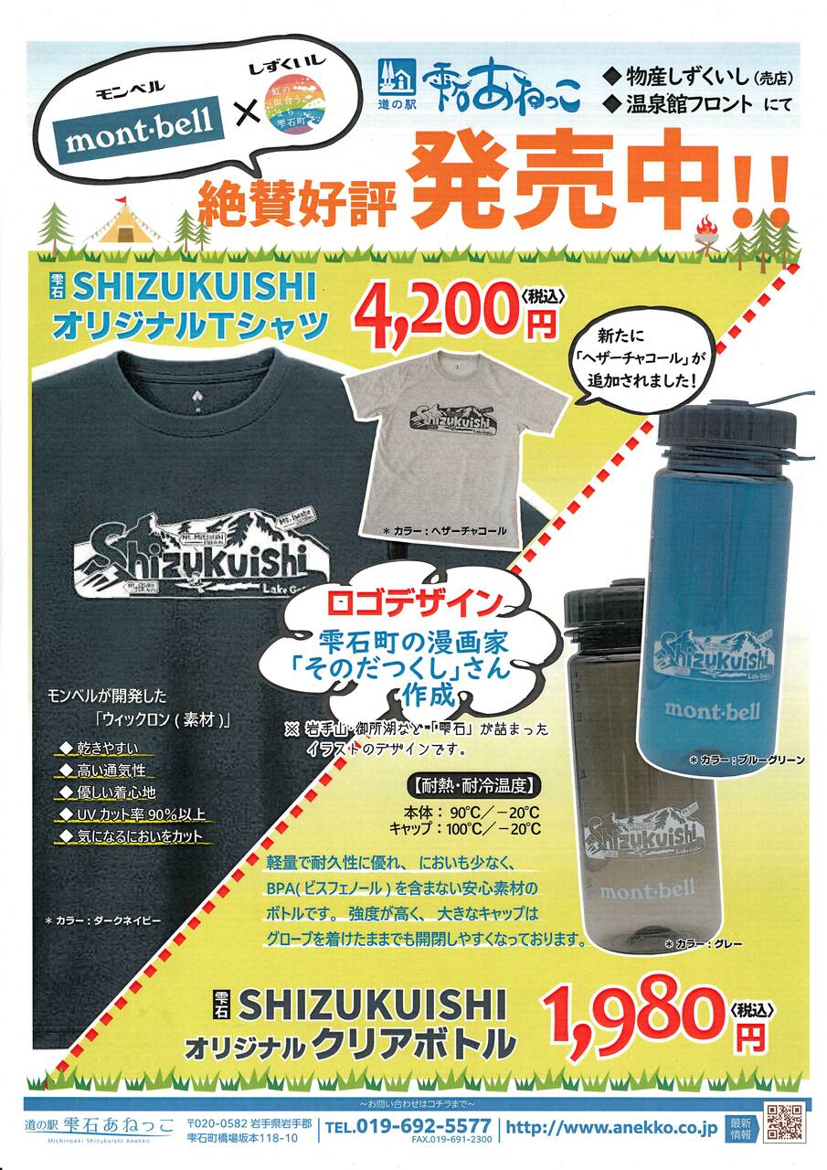 町では株式会社モンベルとの連携事業の一環として、オリジナルTシャツとオリジナルクリアボトルを販売しています!