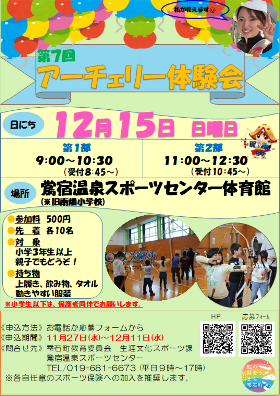 町民へのアーチェリーの普及及び競技人口の拡大を図るため、アーチェリー体験会を開催します!
