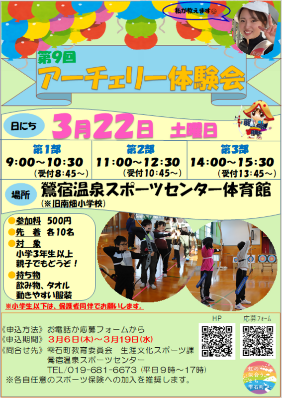 町民へのアーチェリーの普及及び競技人口の拡大を図るため、アーチェリー体験会を開催します!