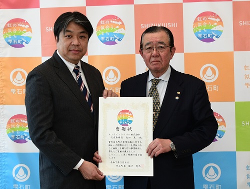 オンライントラベル株式会社様(島田代表取締役、本社大阪府)並びにグローバルプラスサービス株式会社(米本代表取締役、本社東京都)より、本町の地方創生の取り組みに関する企業版ふるさと納税として、各社より100万円をご寄附いただきました。令和7年5月8日(木)には感謝状贈呈式を行い、雫石町長から各社代表取締役へ感謝状を贈呈しました。