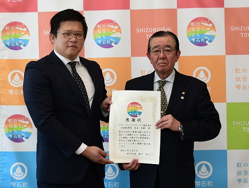 - グローバルプラスサービス㈱米本代表(左)と雫石町長