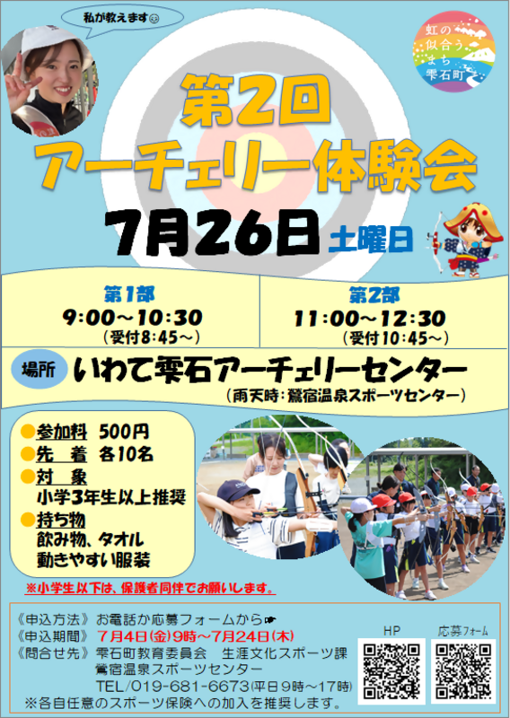 町民へのアーチェリーの普及及び競技人口の拡大を図るため、アーチェリー体験会を開催します!