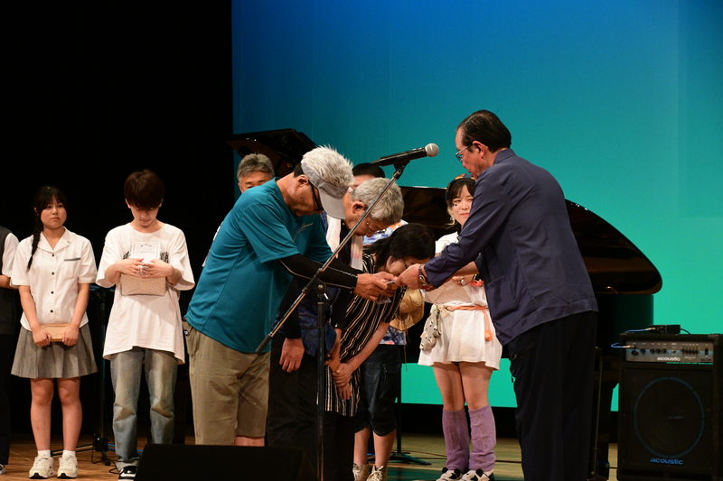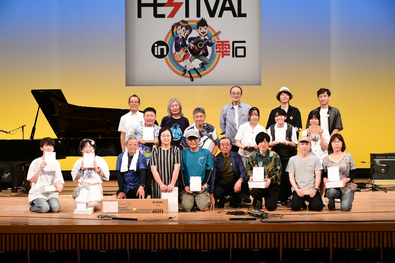 雫石町中央公民館の野菊ホールではオリジナル楽曲コンテスト大会を開催し、学生部門2組と一般部門16組が参加しました。参加者の演奏を業界を代表する方々に審査していただき、2部門の中から総合グランプリ「新生雫石町70周年記念賞」1組とベストボーカル賞1組を表彰しました。また、各部門の1位から3位を表彰しました。