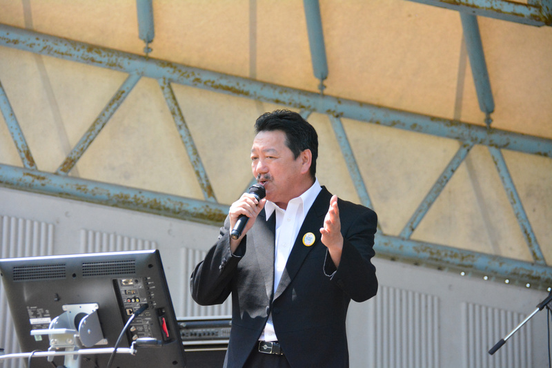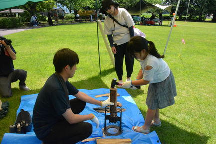 野菊ホールの道路向かいにある世界アルペン記念公園ではカラオケ大会・パフォーマンス大会やスラックライン体験や薪割り体験などのアウトドアイベントが行われたほか、ケータリングも出店しました。また、前回最優秀賞の「中村 旭」さんによるステージイベントも行いました。