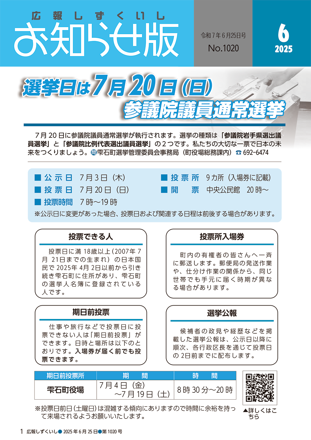 - 選挙は7月20日(日)参議院議員通常選挙