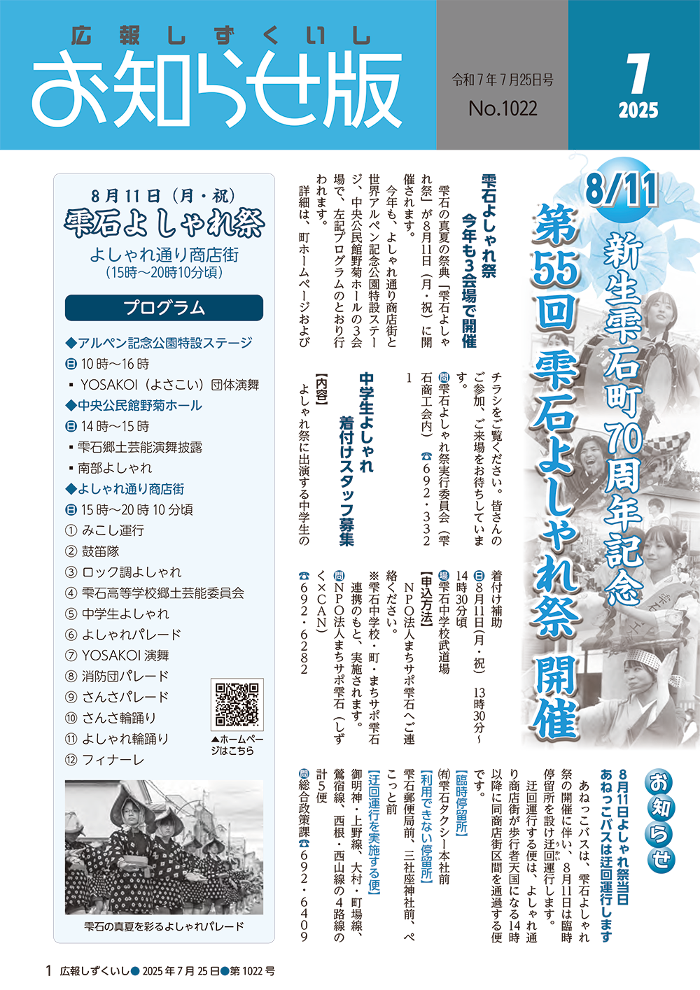 - 新生雫石町70周年記念 第55回雫石よしゃれ祭開催