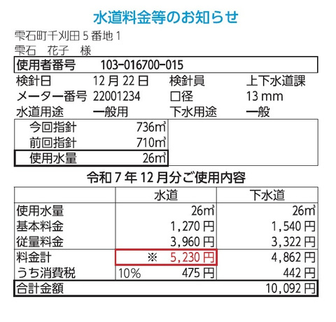 この式により、雫石 花子さん宅の改定後の水道料金は次のとおりとなります。