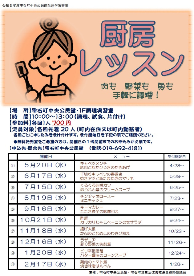 雫石町中央公民館 電話:019-692-4181(平日8:30~17:15)