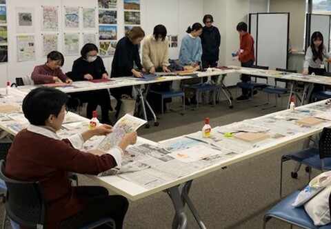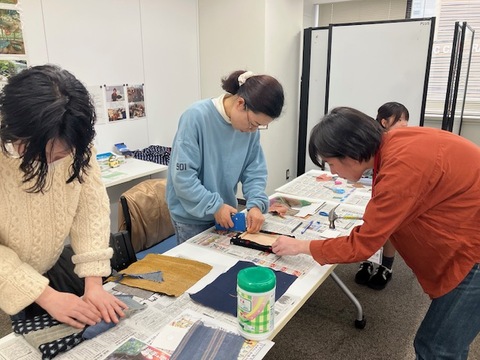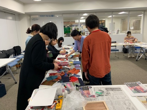 田中さんのひと言をきっかけに、参加者の手元では少しずつアイデアがふくらみ、布の手触りや色合いを確かめながら、思い思いの作品が生まれていきました。