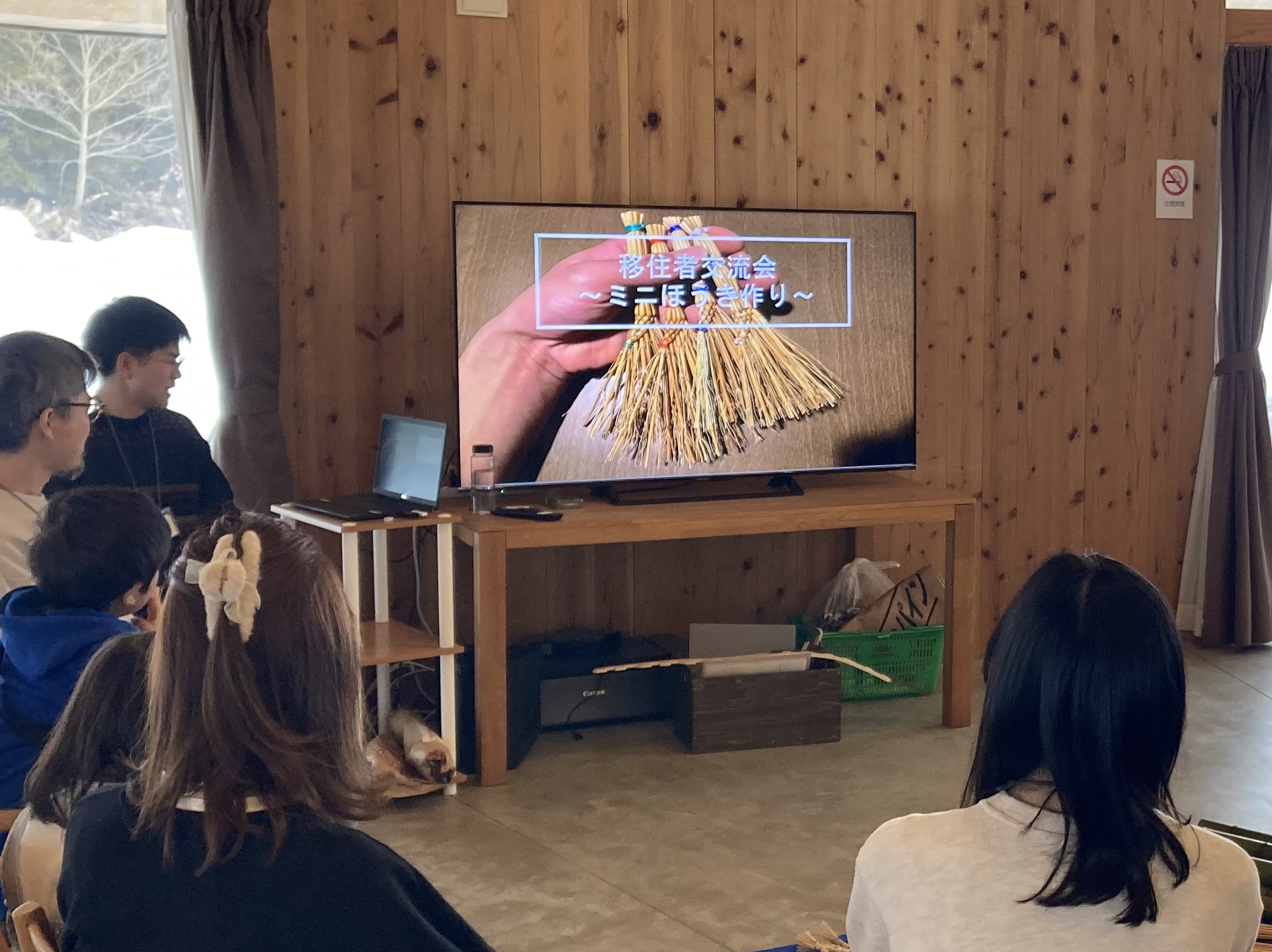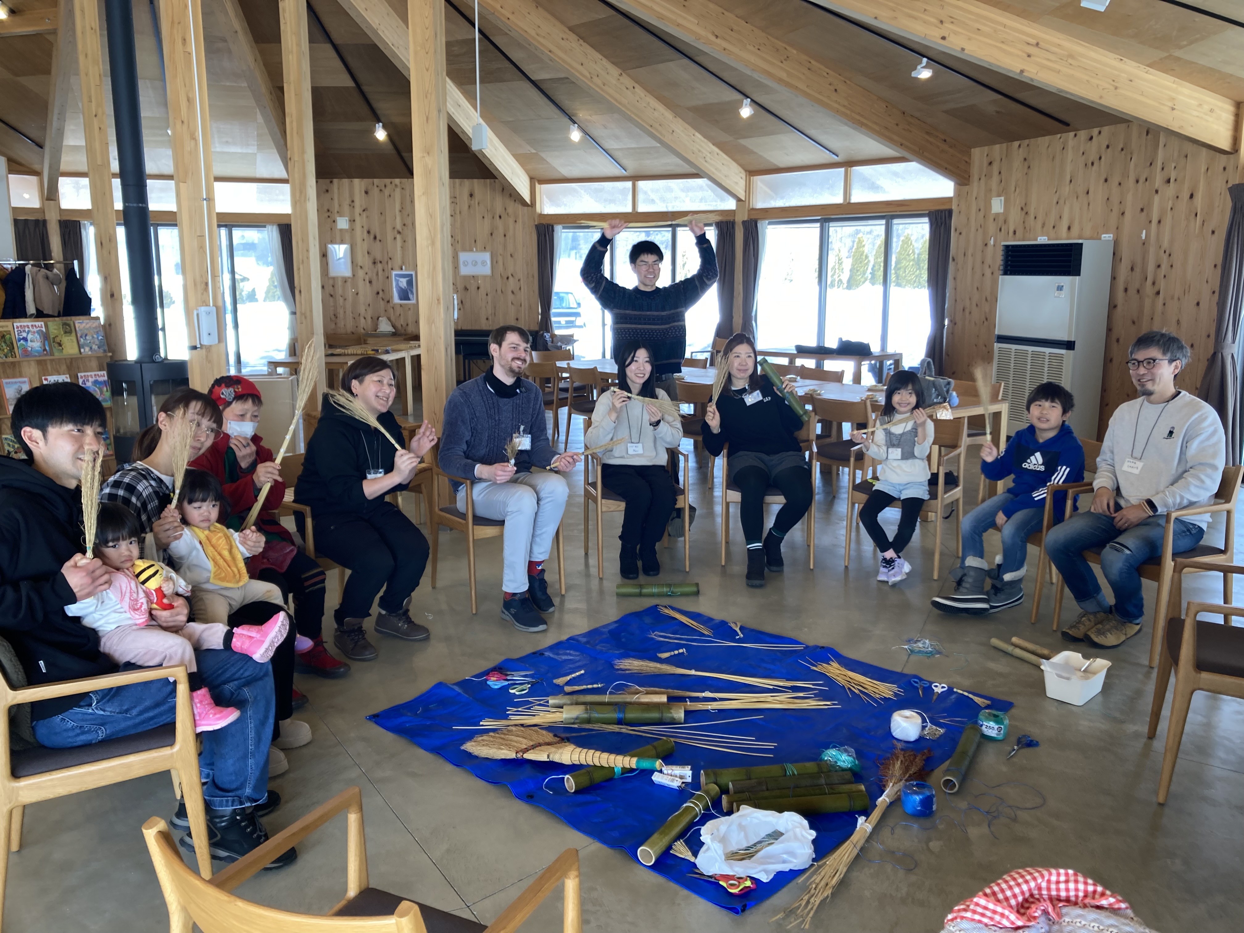 2月15日(日)、雪景色に囲まれた七ツ森地域交流センターで移住者交流会「ミニほうき作り」を開催しました。