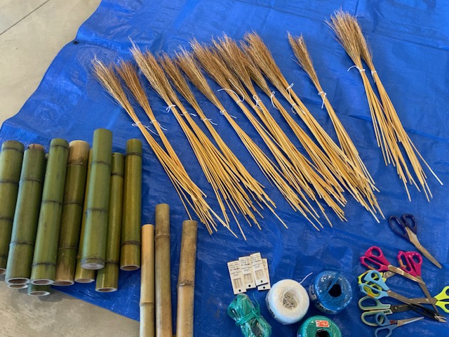こちらは実際に使った、ミニほうき作りの材料や道具です。