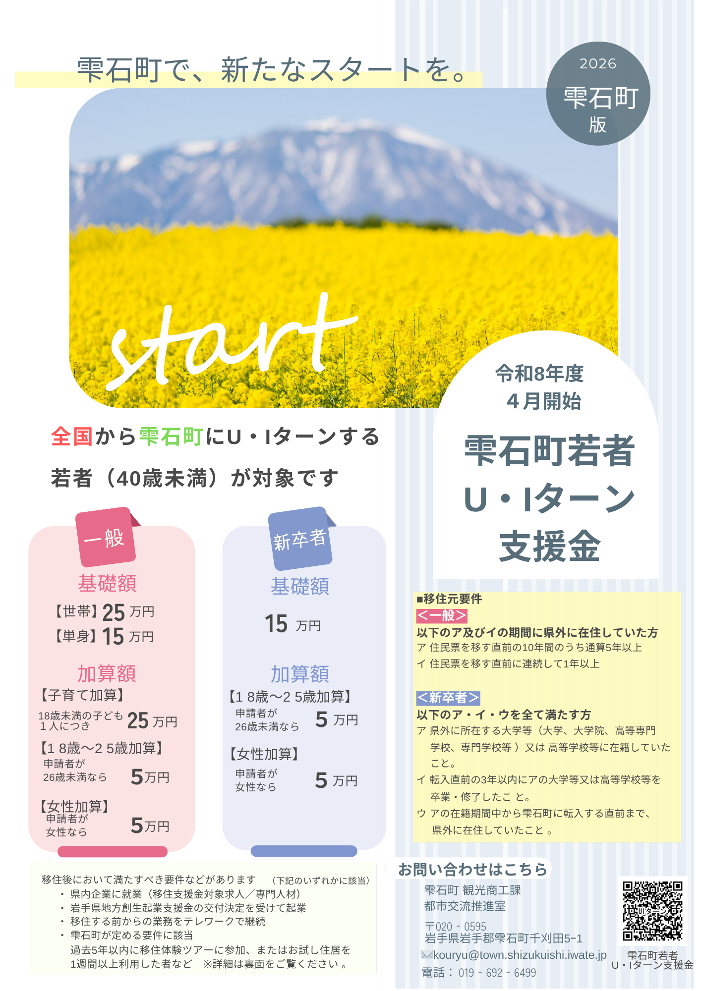 〇雫石町若者U・Iターン支援金(令和8年4月開始)